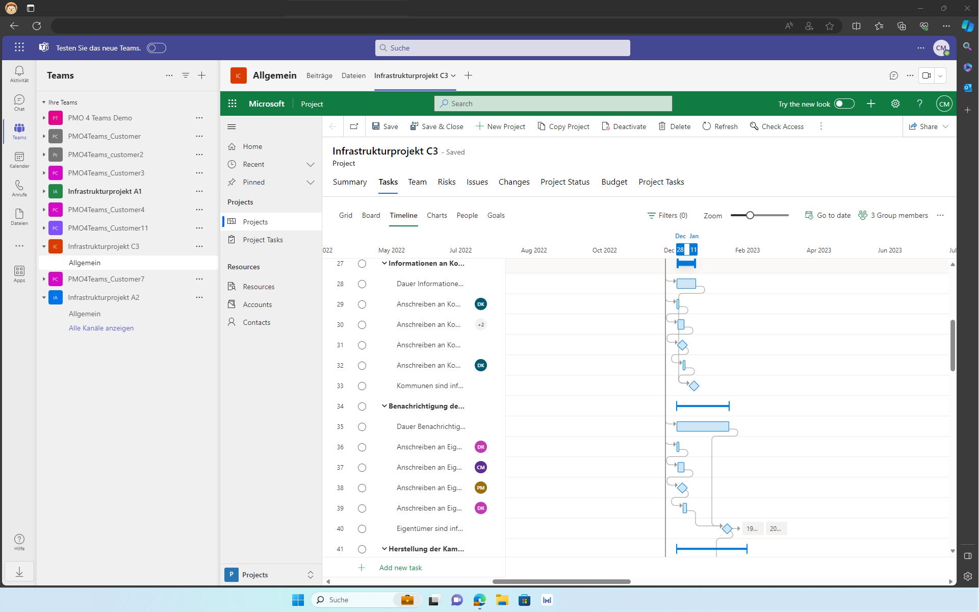 In der Praxis ist es allerdings so, dass in Project for the Web beim Anlegen neuer Projektpläne aus einer Vorlage nicht alle Informationen, die in den Vorgängen gespeichert sind, in den neuen Plan übernommen werden. So werden u.a. die den Vorgängen zugeordnete Ressourcen nicht übertragen. Diese Einschränkung gibt es in PMO4Teams nicht.